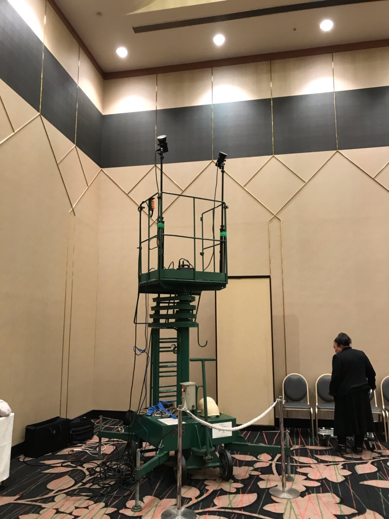 それだけ多くの集合写真を撮る時は4階の大宴会場でタワーに乗り俯瞰で撮影します。